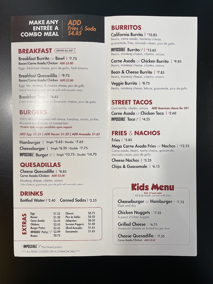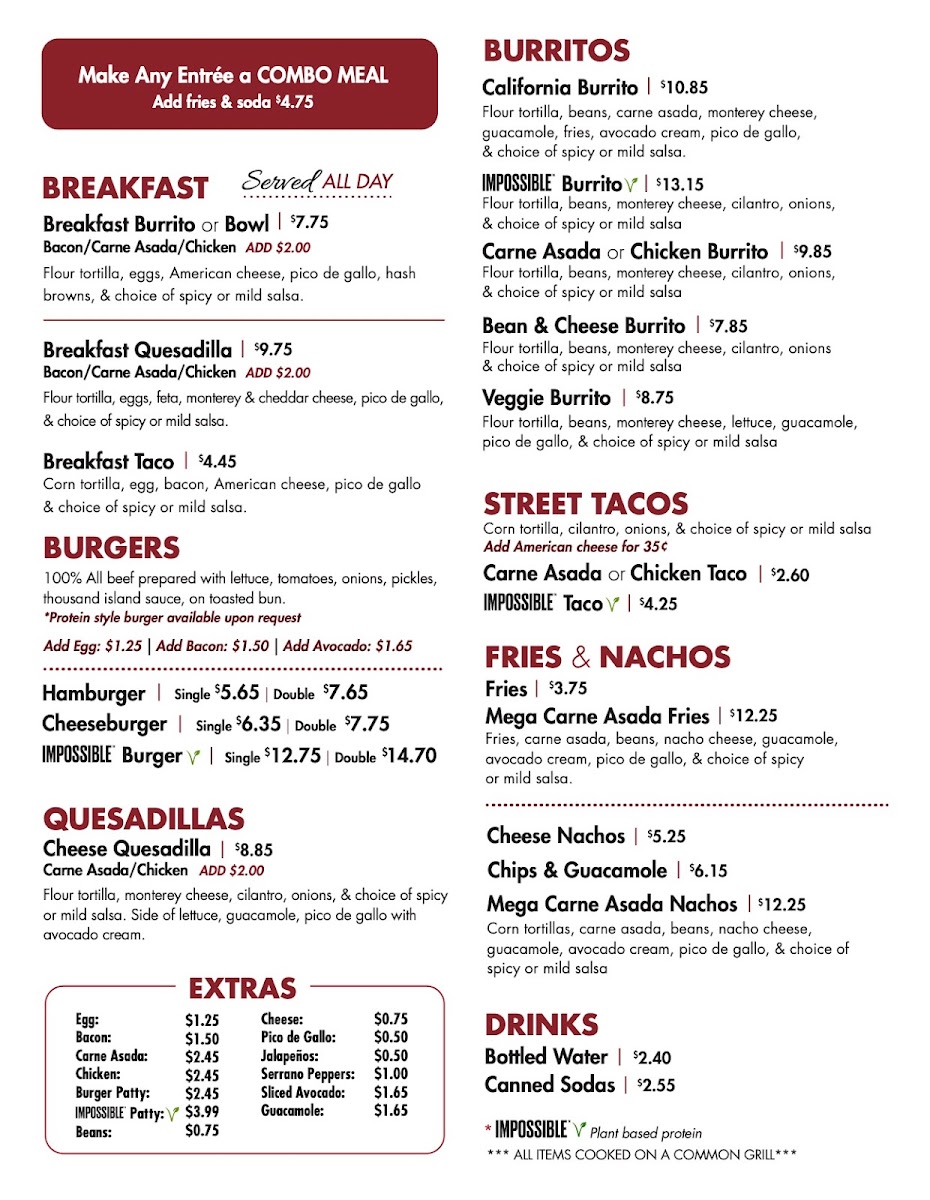 Welcome to The Great White Hut in Los Angeles, a culinary gem nestled at 1353 Glendale Blvd. With a focus on satisfying comfort food, this spot brings a vibrant and inviting atmosphere perfect for a casual bite. The menu features a variety of scrumptious options, including the renowned California Burrito, packed with a delightful mix of fresh ingredients like guacamole, fries, and your choice of meat, all wrapped snugly in a flour tortilla for just $13.75.